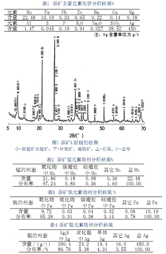 以氧化物形式存在的含銀錳礦,其主要可利用礦物大多嵌布粒度微細(xì),銀與錳、鐵等礦物結(jié)合緊密,難以用選礦方法對(duì)銀、錳、鐵等進(jìn)行有效分離,且原礦氰化浸銀浸出率一般小于30%,這類礦石一直被歸為難利用的“呆礦”類型[2-3]。