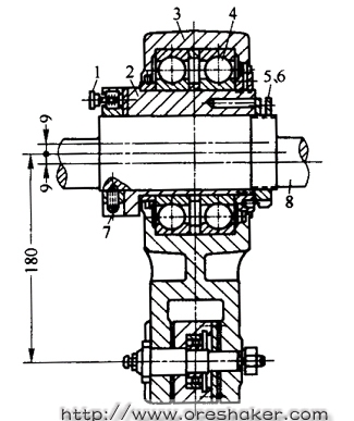 1-定位銷;2-偏心套環;3-連桿;4-軸承;5、7-緊固螺釘;6-螺帽;8-偏心軸