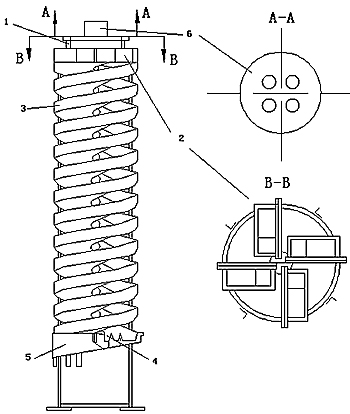 1-槽鋼機架; 2-給礦槽; 3-螺旋溜槽;