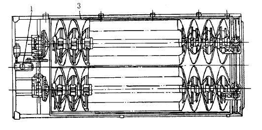 1-螺旋分級機傳動裝置 2-螺旋分級機水槽 3-螺旋分級機左右螺旋軸