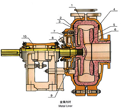 該系列泵為臥式、垂直中開式、雙泵殼結構,泵體和泵蓋帶有可更換的金屬內襯或橡膠內襯,內襯可一直用到磨穿為止,不用更換,延長維修周期,降低運行成本。