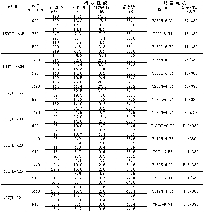 ZJL系列渣漿泵ZJl系列渣漿泵在水力設計、結構設計以及所用耐磨材料上,綜合應用了國內外同類產品的優點并加以創新,具有高效節能、振動小、噪聲低、運行可靠、使用壽命長、維修方便等特點,泵的綜合性能居國內領先水平,大部分泵的效率指標居國際先進水平。可廣泛用于電力、冶金、煤炭、建材等行業輸送含有固體顆粒的漿體。如火電廠水力除灰、冶金選礦廠礦漿輸送、洗煤廠煤漿及重介輸送等。其允許輸送的最大漿體重量濃度Cw為:灰(渣)漿和煤漿45%;礦漿和重介60%。