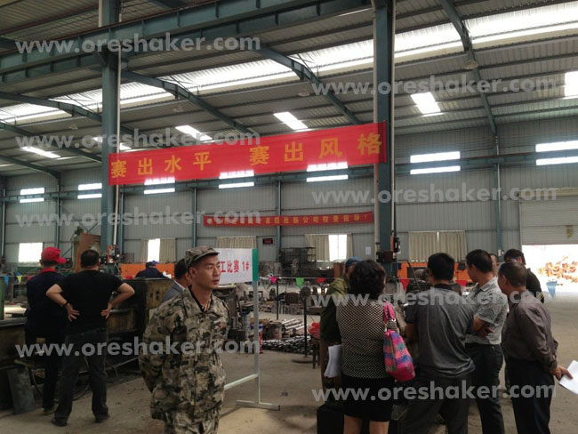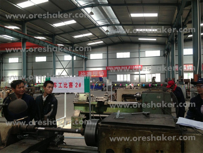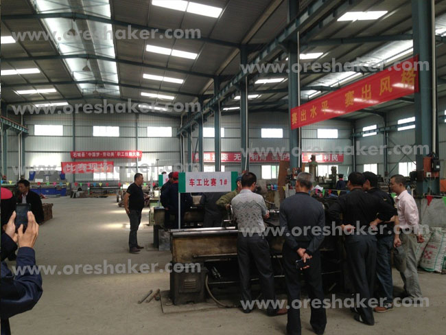江西省恒誠選礦設(shè)備有限公司現(xiàn)場報道,2013年9月29日在我縣向全縣選礦設(shè)備廠組織的職工技能大賽正式舉行, 大賽中包含車工比賽、鉗工比賽等,車工比賽內(nèi)容:1 個小時內(nèi)完成選礦搖床往復(fù)桿1根,測量加工的準(zhǔn)確度;鉗工比賽內(nèi)容:完成球磨機螺帽加工,要求速度及完美度。比賽結(jié)果最終以評委投票的形式產(chǎn)生,獲獎?wù)哂形铱h豐厚的獎勵。