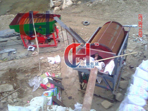 ↑ Gold placer complete set of equipment: drum screen>>> sawtooth jig>>> 6S shaking table.